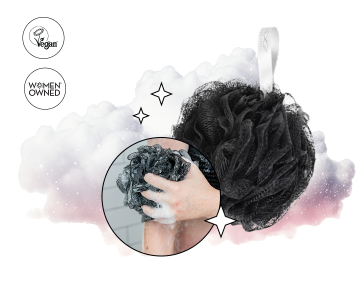 Dampen and apply cleanser to the pouf, then work into a lather and massage over your entire body.